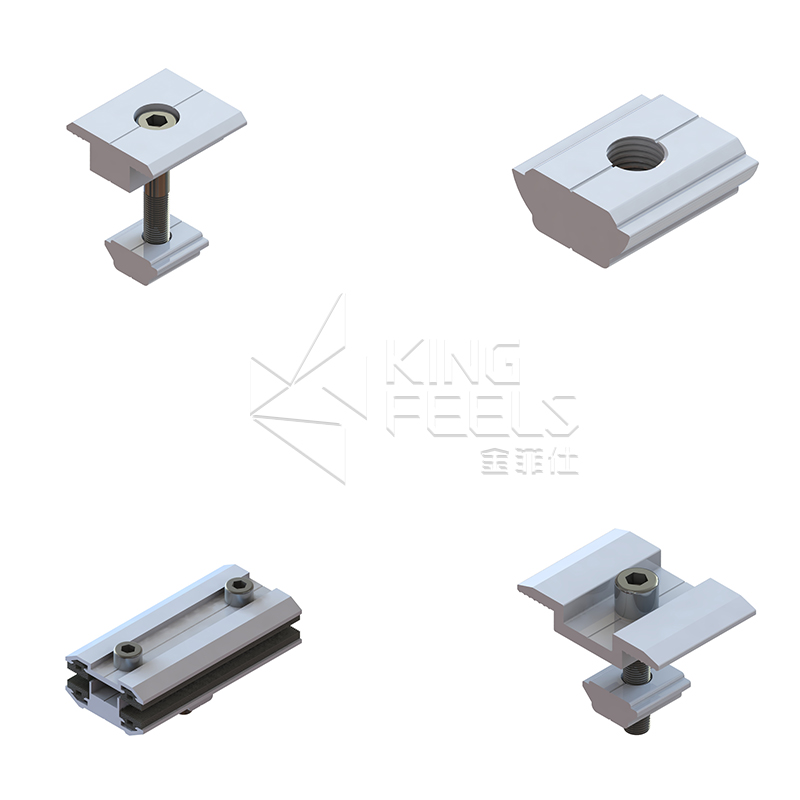 Komponen pelekap suria pengapit pertengahan kami menggunakan aluminium anod berkualiti tinggi (AL6005-T5) yang mematuhi standard antarabangsa.