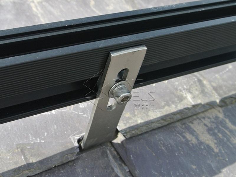 Slate Tile Roof Solar Panel Brackets Tile Roof direka khusus untuk pemasangan panel solar pada bumbung jubin batu tulis. Ia sangat mudah untuk dipasang dalam beberapa langkah dengan beberapa komponen. Juga, ia serasi dengan modul bingkai dan tanpa bingkai.