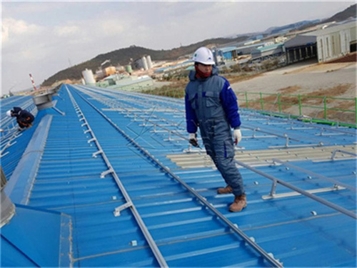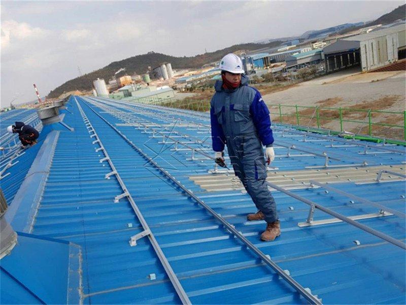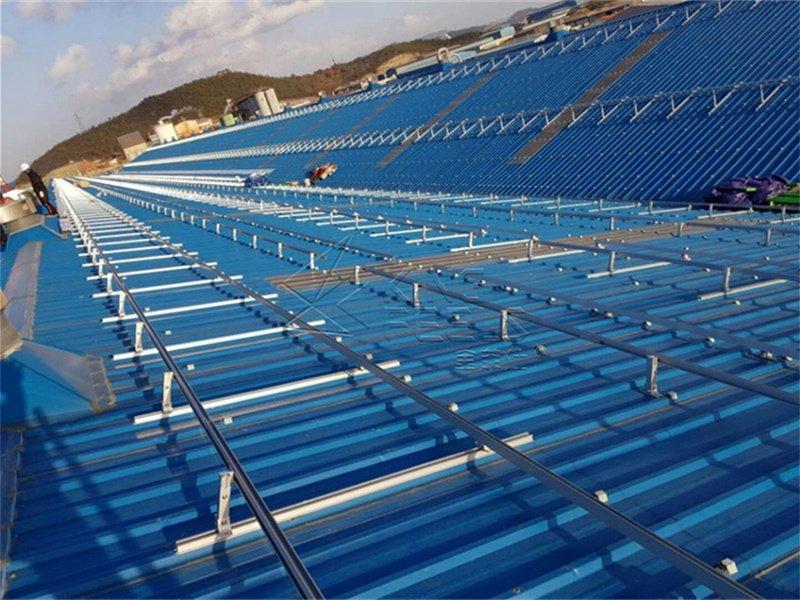 Pemasangan Rak Bumbung Panel Suria Bumbung Logam Timah adalah serasi dengan setiap saiz tatasusunan modul yang mungkin, juga, ketinggian boleh dilaraskan melalui lubang memanjang dalam pendakap kepingan logam. Dan kos pemasangan adalah sangat rendah.